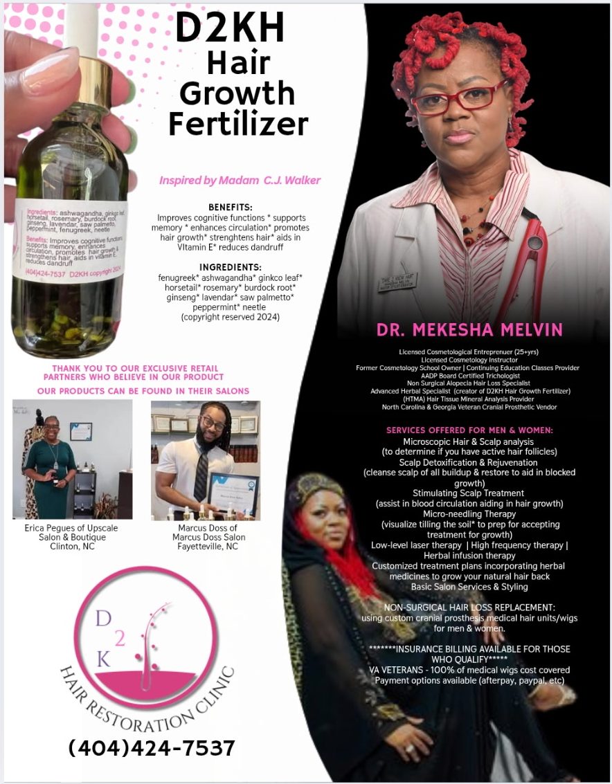 MeKesha Melvin Trichology & Hair Loss Clinic was founded in Fayetteville, NC, to provide innovative solutions for hair loss.